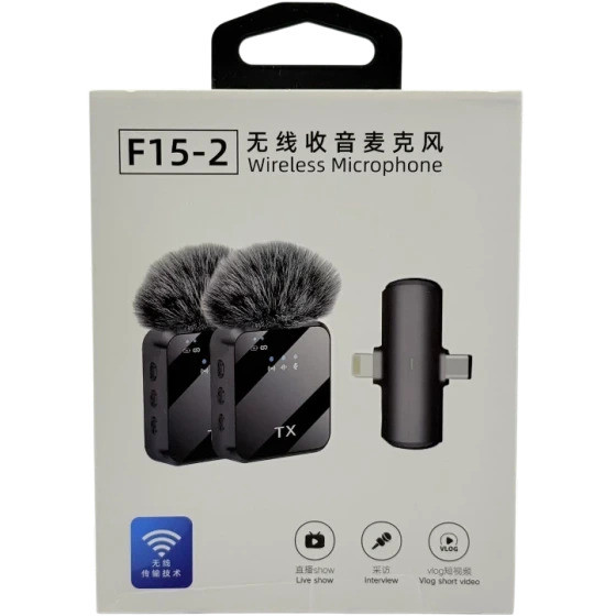 میکروفون یقهای بیسیم F15-2 | ست دو میکروفن با گیرنده ۳in1 برای vlogging و ضبط حرفهای