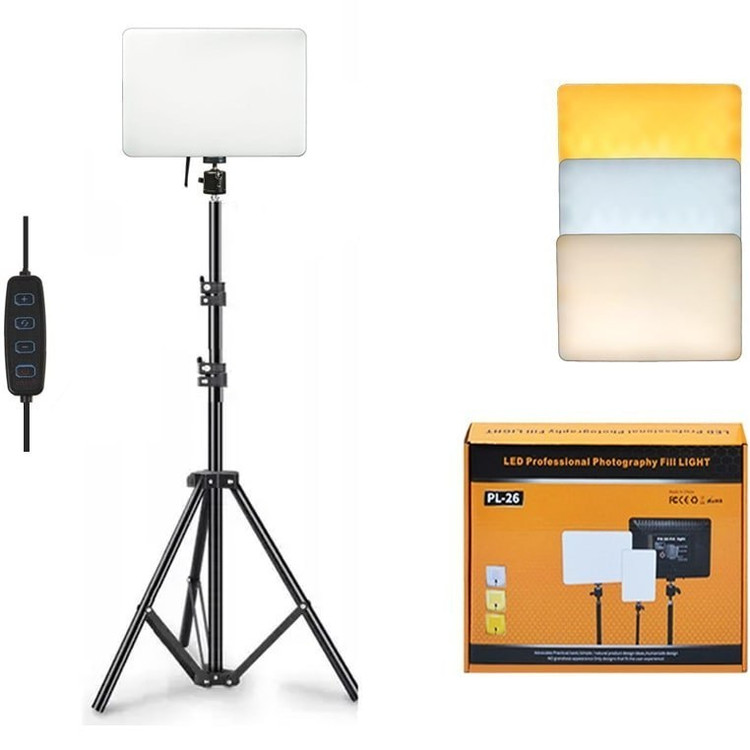 نور ثابت PL-26 با پایه | پنل LED حرفهای برای عکاسی، ویدیو و تولید محتوا