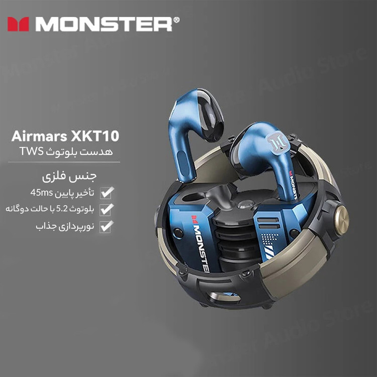 ایرپاد Monster مدل XKT10 از سری ایربادهای خوشکیفیت و اقتصادی برند مانستر است که با کیفیت صدای بسیار مناسب، طراحی ارگونومیک و اتصال پایدار بلوتوث توانسته بین کاربران محبوب شود.