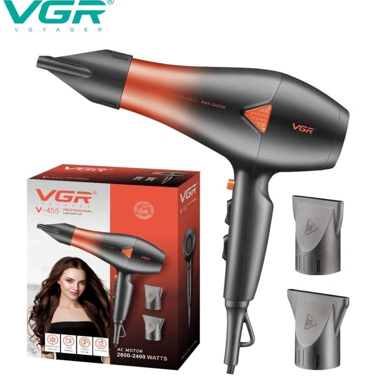 سشوار حرفهای VGR مدل V-455 | پرقدرت، دارای باد سرد و متمرکزکننده هوا