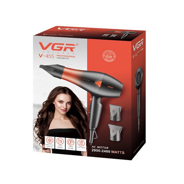 سشوار حرفهای VGR مدل V-455 | پرقدرت، دارای باد سرد و متمرکزکننده هوا