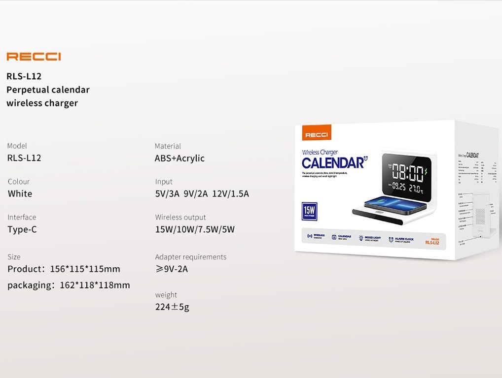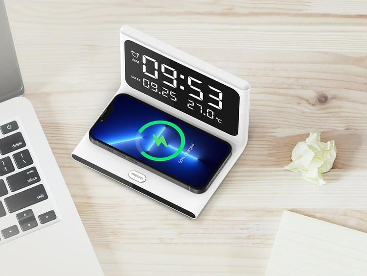 شارژر بیسیم Ressi RLS‑L12 یک دستگاه چندکاره رومیزی است که در کنار شارژ سریع بیسیم، نقش ساعت رومیزی، تقویم دیجیتال و نمایشگر چندسطحی نور را نیز ایفا میکند. این محصول برای میز کار، اتاق خواب و کنار تخت انتخابی ایدهآل است و علاوه بر شارژ ایمن، ظاهر مینیمال و کاربردی آن فضای شما را منظمتر میکند.