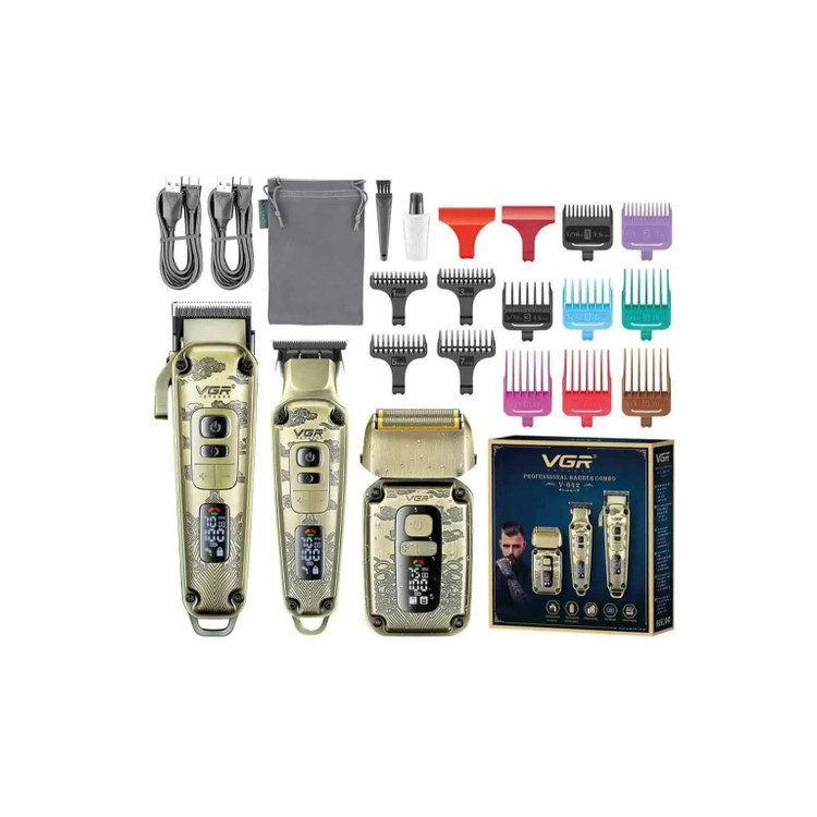 ماشین اصلاح سر و صورت سهقلو VGR V-642 | مجموعه کامل کلپر، تریمر و شیور حرفهای